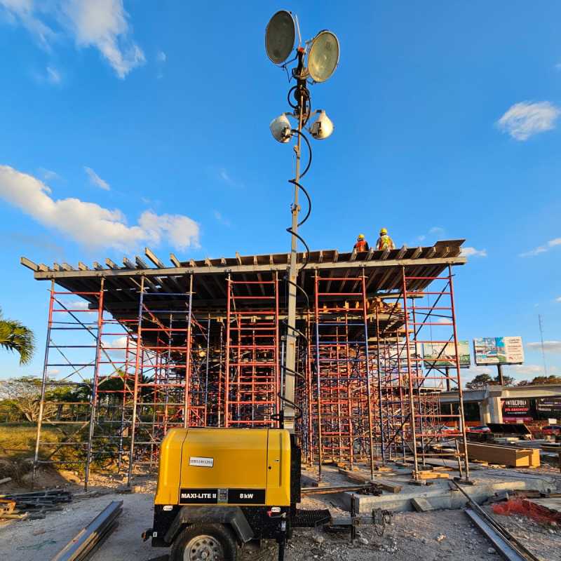 Equipos portátiles con motor a diésel con lámparas de 1000 W y mástil de 10 metros.